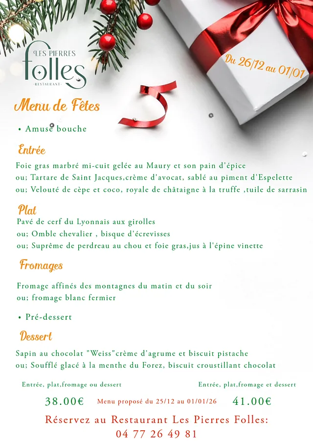 Nous vous proposons notre menu festif du 25/12/2025 au 01/01/2026