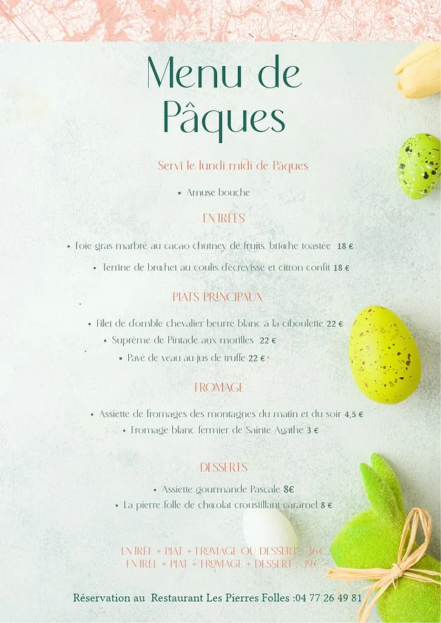 Voilà notre menu de Pâques concocté avec amour et passion!